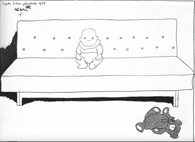 Pilapiirtäjä Kari Suomalainen toimi piirtäjänä…. ja piirsi yllä olevan onnittelukortin vaimolleen äitienpäivänä 1956.