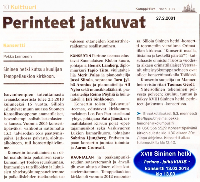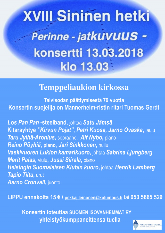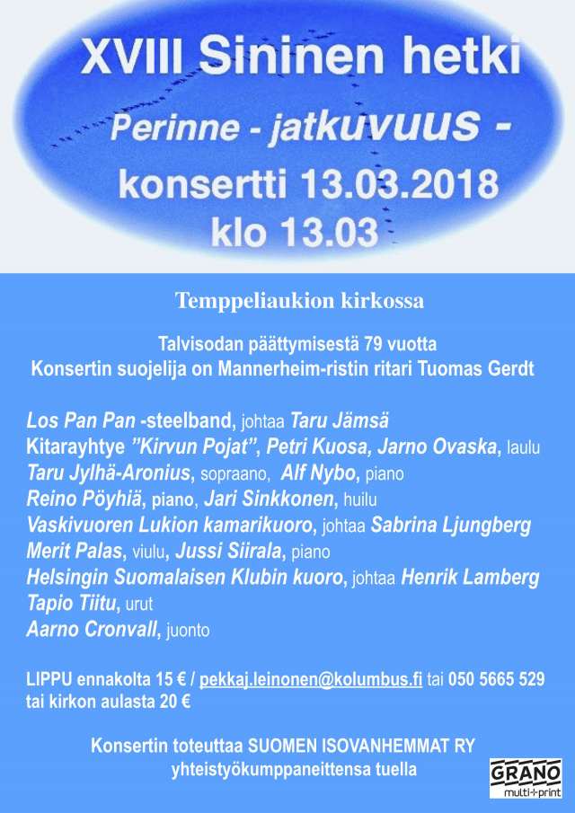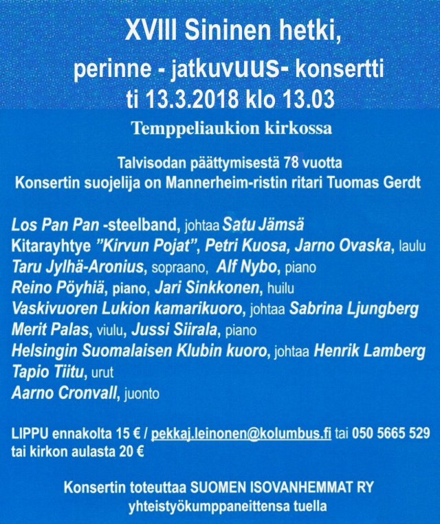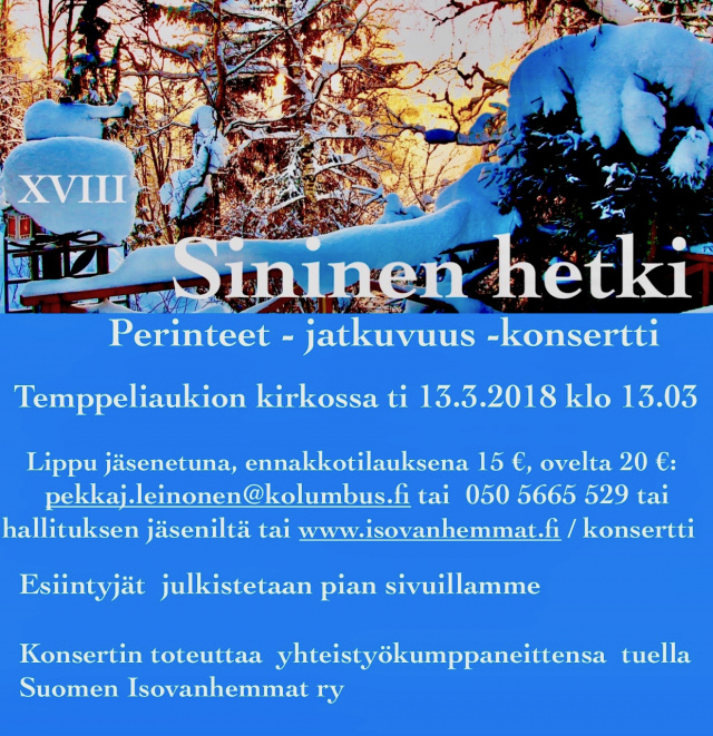 Ti 13.3.2018 klo 13.03 XVIII Sininen hetki, perinteet -jatkuvuus -konsertti