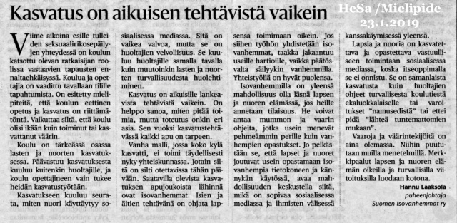 toi uuden mielipidekirjoituksen 24.10.2018 ja yhteydenottoja viestein ja soitoin.