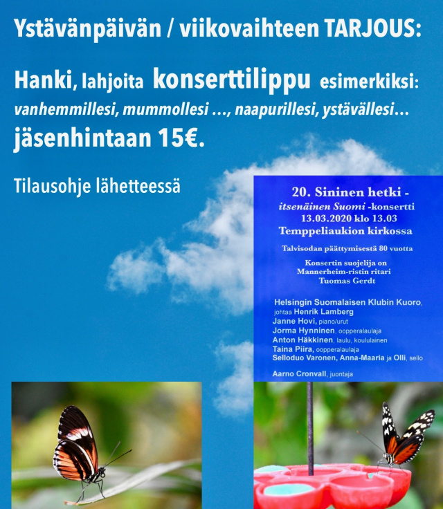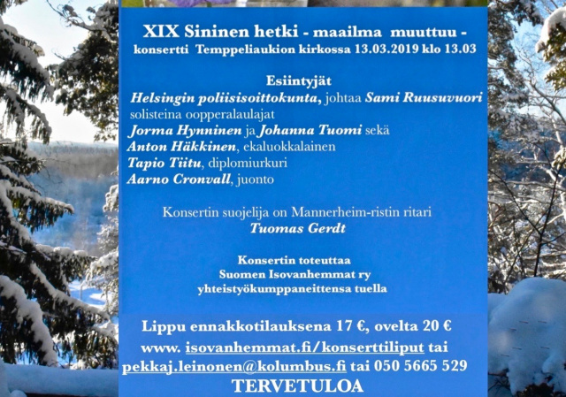 Helmikuusta maaliskuulle 2024. 24. Sininen hetki – kunnioittaen -konsertti 13.3.2024 lähenee. TERVETULOA!