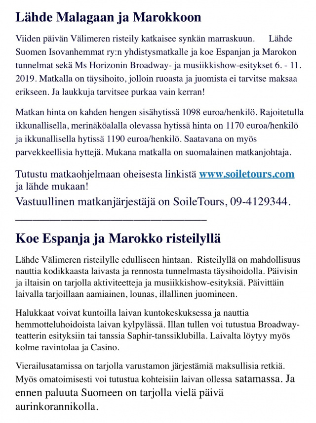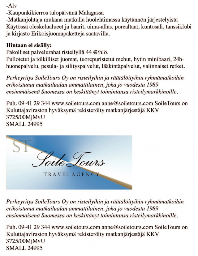 Suora yhteys: anne@soiletours.com tai www.soiletours.com