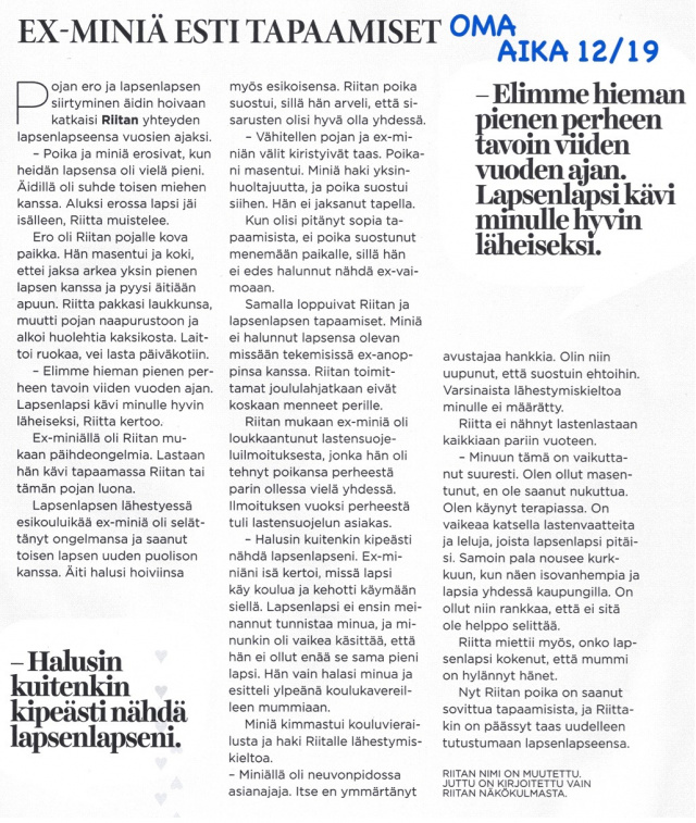 IV Uutiset Nro 1, ensimmäinen, jotakin isovanhemuuteen: