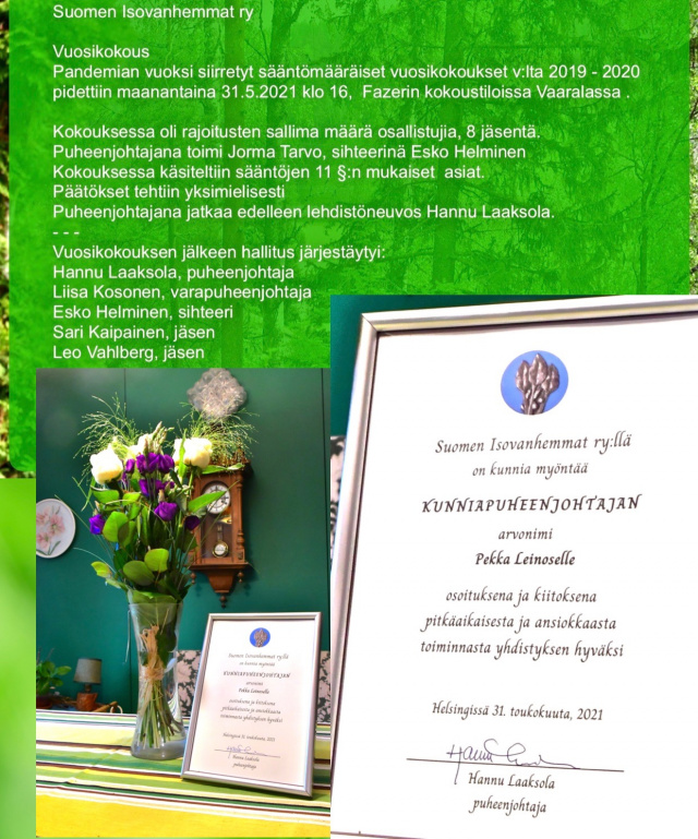 Vuosikokoukset 2019 ja 2020, siirretyt, on pidetty ma 31.5.2021.