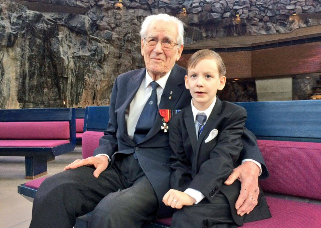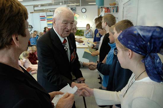 Kenraali Mauri Mäkelä oli luovuttamassa Sydänliekki –merkkiä Espoon Kristillisellä koululla 6.5.2005.